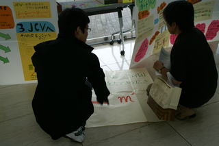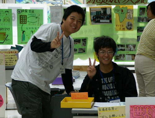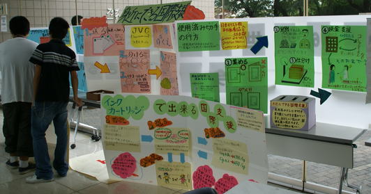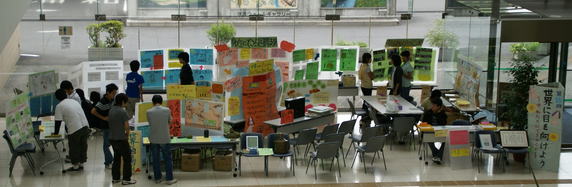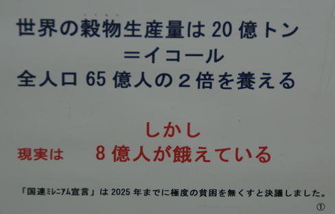 外側には、「写真のつづきは」「100人の村だったら」を展示。