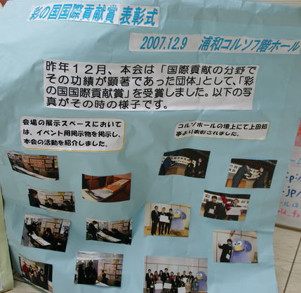 入り口にある賞状は、彩の国国際貢献賞のもの。