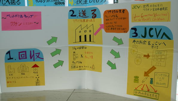 こちらも今年から。ペットボトルキャップのゆくえ。JCVの例です。