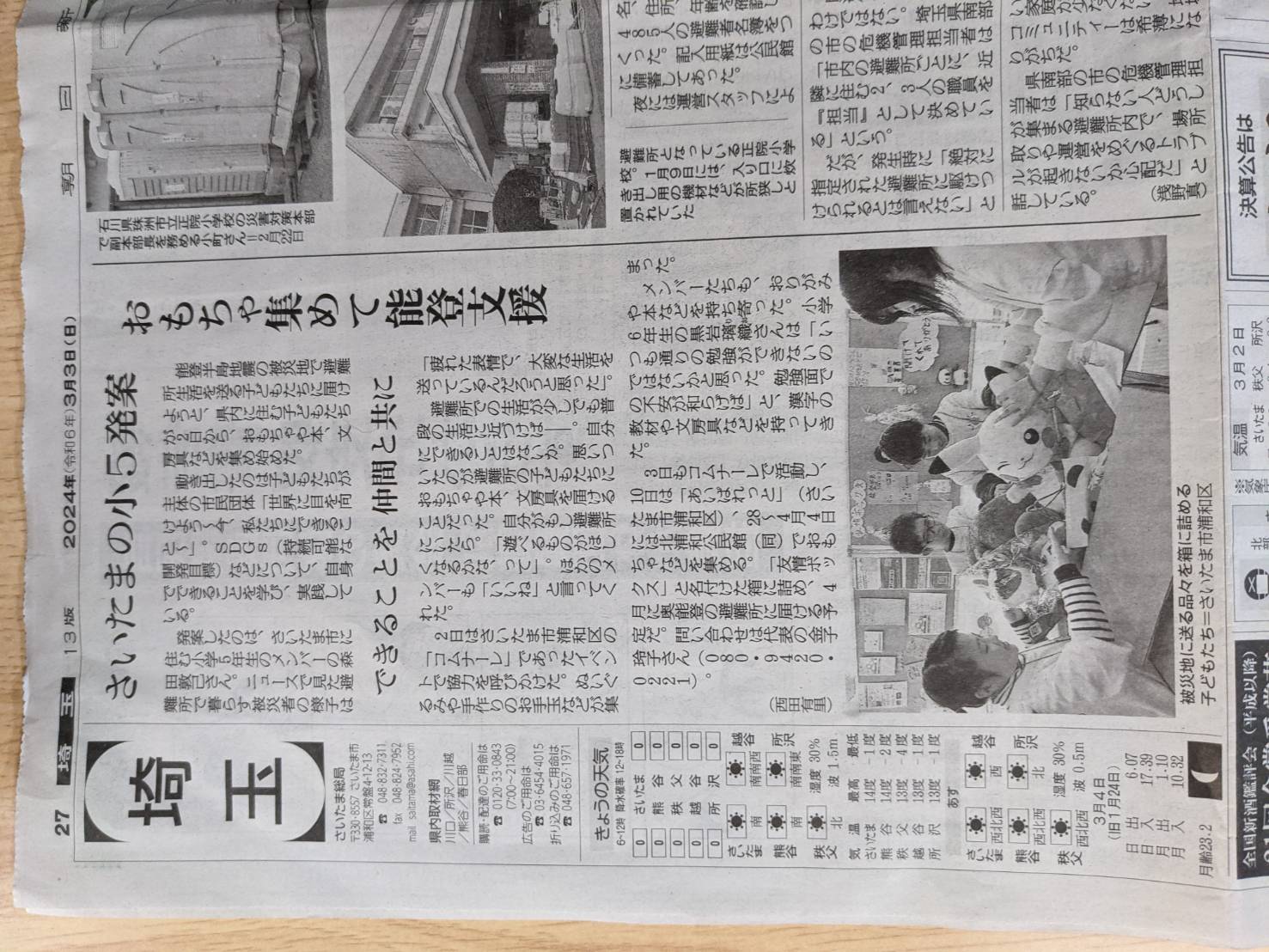 そのことを知った朝日新聞の記者さん(丁度能登の取材から戻って来られたばかりとのこと)が取材に来て下さり、